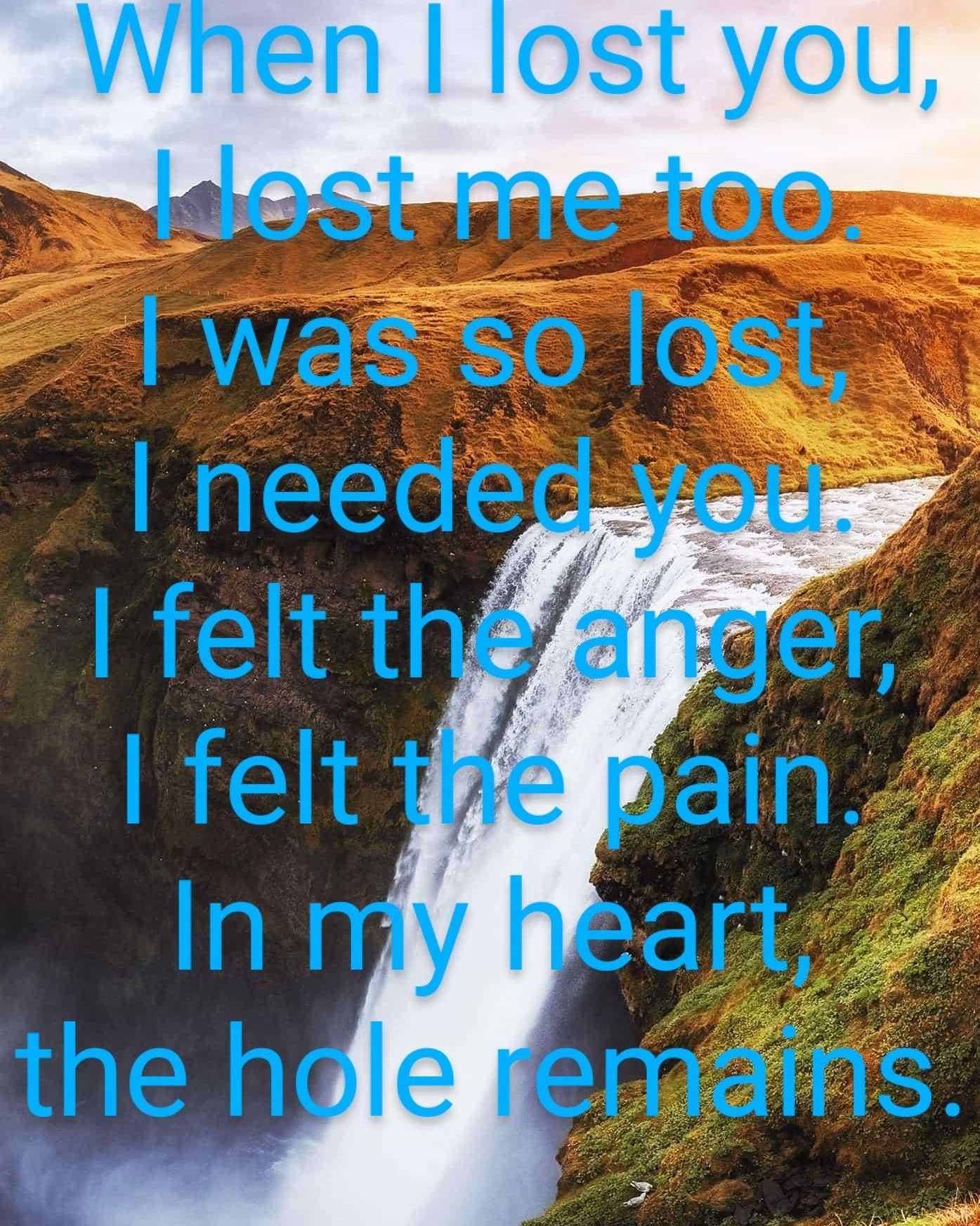 Stop searching and accept this void, that way your life journey will continue and the void will become your new normal. I know its a normal none of us want, but it’s the best it can be.